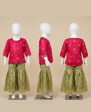 Product Title: Rosy radiance Pink Kurti with Green Sharara Pants.